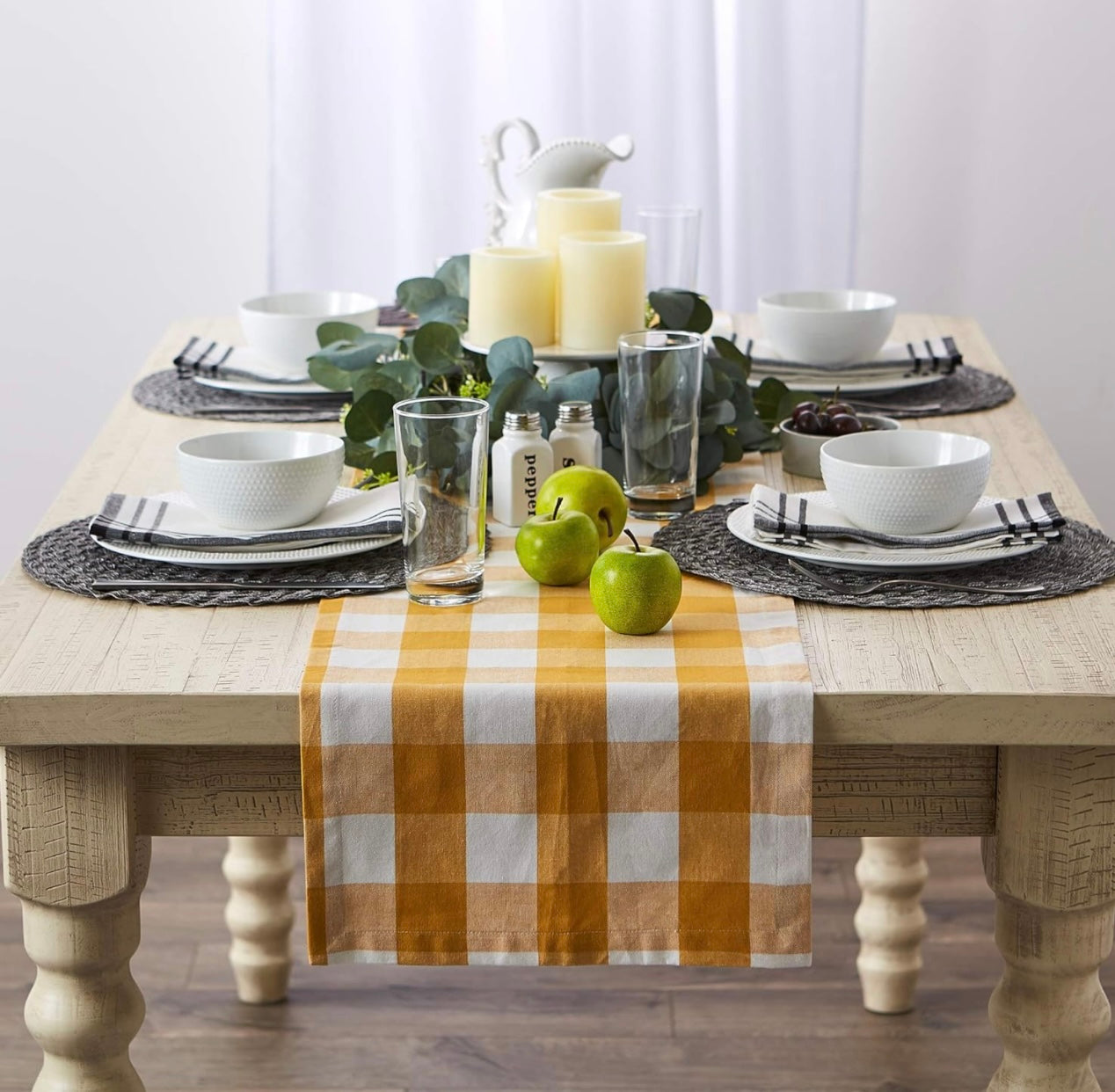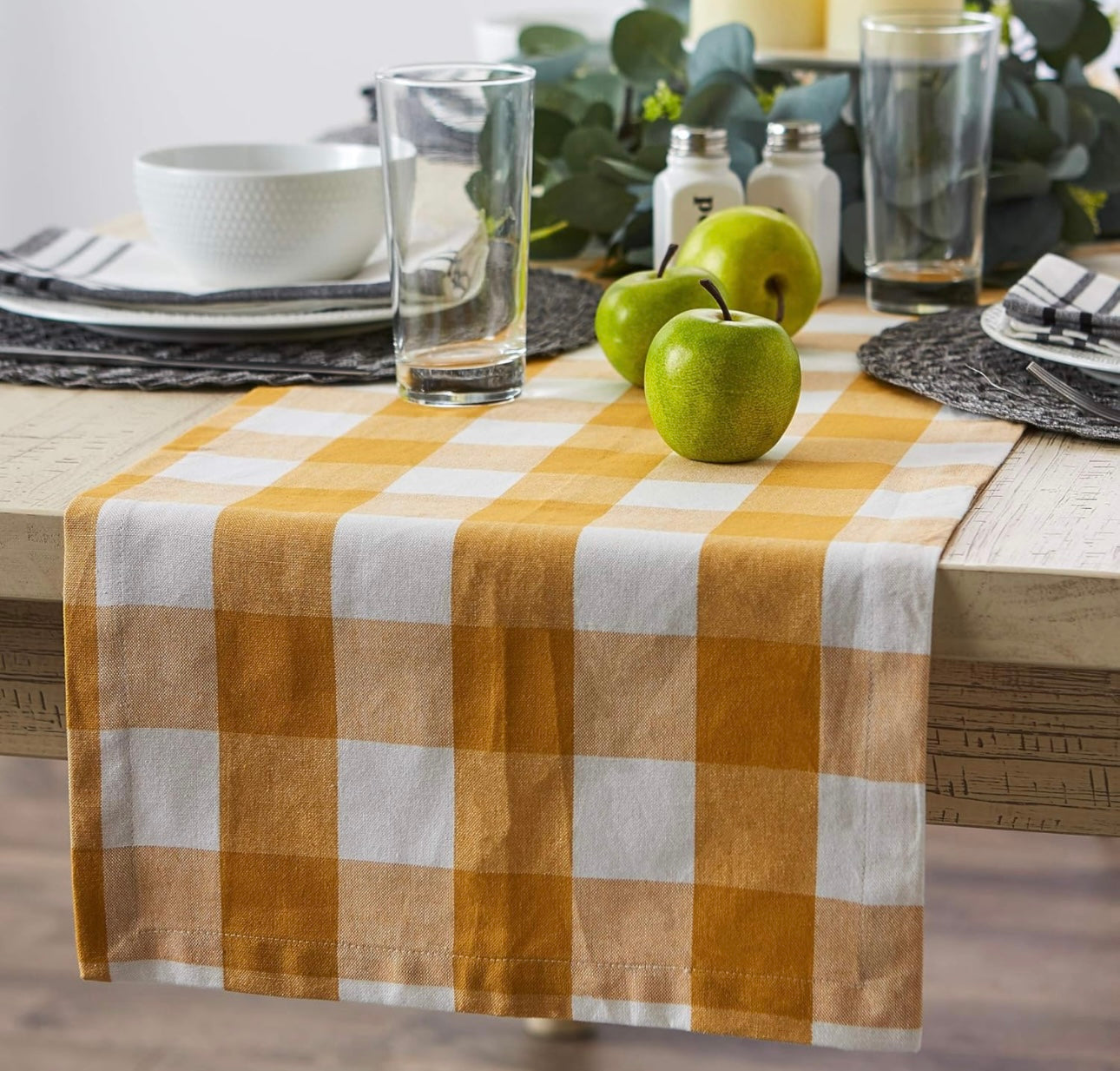 Camino de mesa Buffalo check mostaza. Medidas 272 x 36 cm. Material 100% algodón.