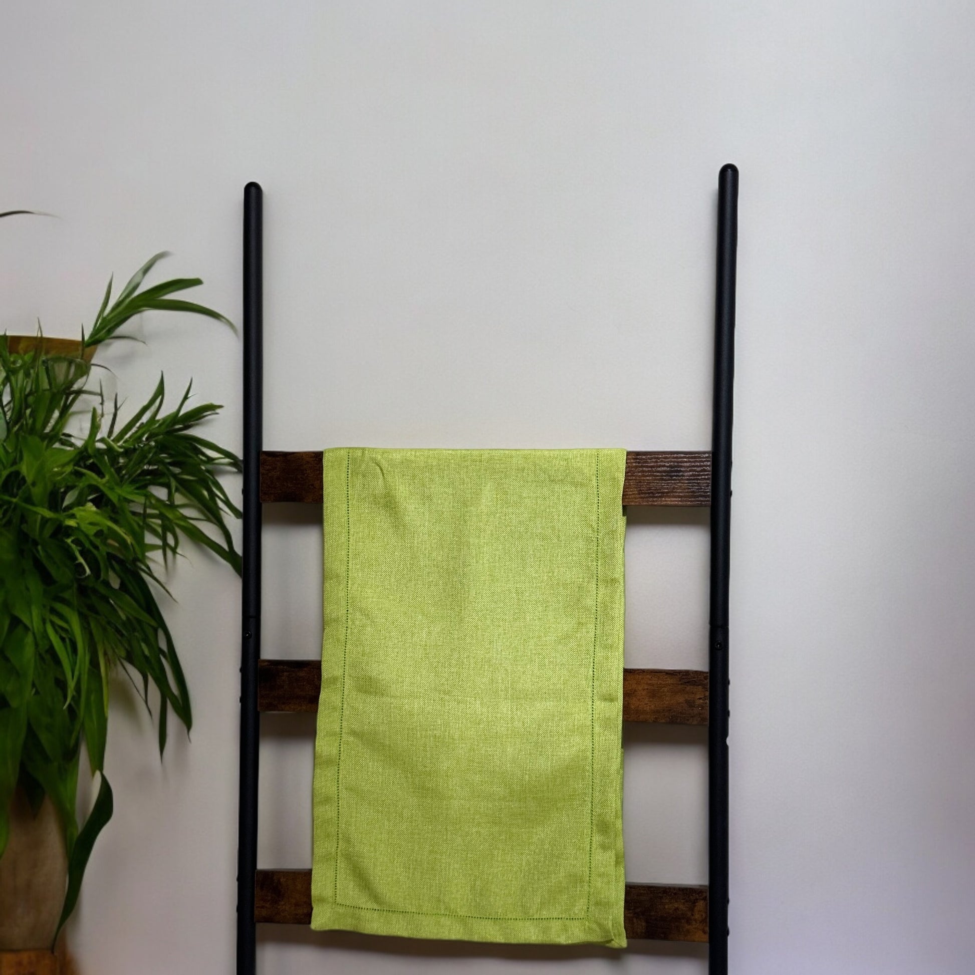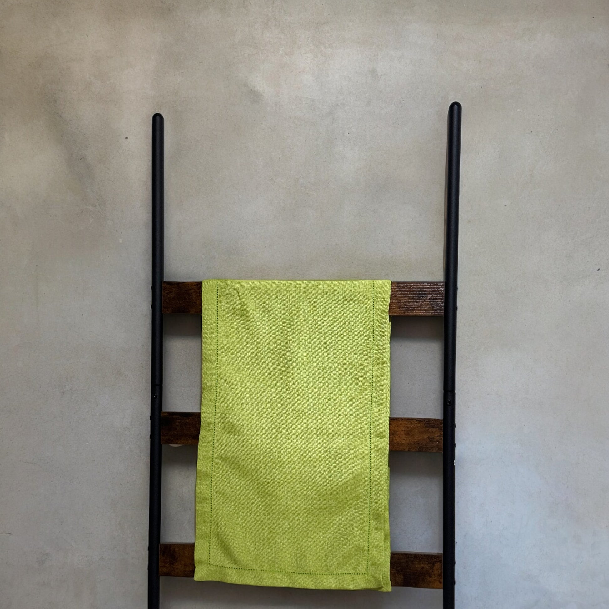 Camino de mesa en color verde limon en lino vintage. Medidas 240 x 40 cm.